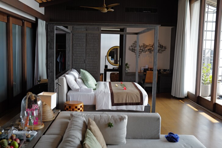 房間的設計與功能,已經是一個小小的兩人世界,一切享受無需出門就可達成,然而在這島上,因服務安排得當,這兩人世界還能繼續延伸。