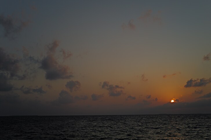不論在世界那個角落,早起欣賞晨曦美景,是我的最愛,期待在這世外桃源,能遇到幾位同好,沒想到,整個島上只有我和群兩人願意犧牲睡眠,在那一刻,似乎整個島只屬於我們倆的,星光月色之中,出門往東走,小艇碼頭和餐廳是兩個絕佳賞景地點,像在私人庭院之中,一路散步,天色漸亮,日出三十分鐘前,天光雲彩呈現橘橙粉黃的顏色變化,清風徐來,拍浪聲,一望無際的海洋,海的盡頭,火紅太陽在海平面冉冉升起,灑出金黃的半片天,此情此景,令人陶醉。