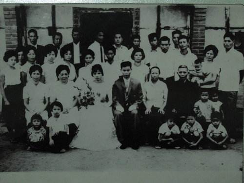 在老家看到1張放大舊照片,是爸媽的結婚時家族團圓照,時光凍結在黑白影像裡,想我父母當時正年輕。