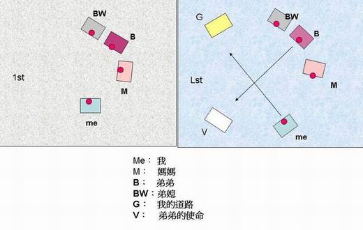 當她站在弟弟(深紫紅)位子時,覺得弟弟在看一個遙遠的地方,