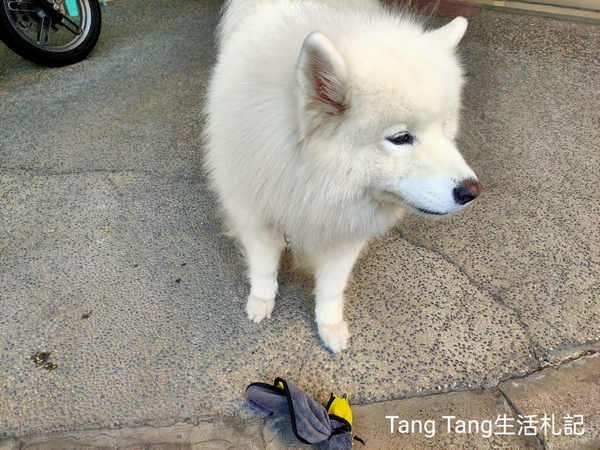 走在街上,在一戶人家門前見到一隻大狗。牠有著潔白蓬鬆的毛色,還有一對小小的眼睛。 我停在屋前,狗狗拎著牠最愛的玩具朝我跑過來,似乎是在邀請我跟牠一起玩。 當狗狗跑到我面前時,我才發現牠的眼睛並沒有像櫻...