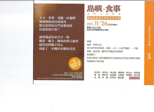 《島嶼.食事--金門人金門菜》。由出版社聯合文學與作者群共同策劃的新書發