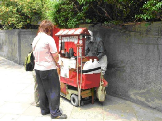 羅大哥剛開始在住家附近的郵局擺攤,前晚現磨的咖啡,自家烘培的咖啡豆,30到60元的平價,吸引了一批愛喝純咖啡的上班族,生意才剛起色,就被附近的同業檢舉,個性溫文不善交際的羅大哥,半年內,換了六個點,每次好不容易生意有起色,就被迫搬遷,目前在和平東路溫州街的一個住家前設攤,【我不想再搬了,就算生意不好,但至少這裡不會被趕】羅大哥低調的作風,總是靜靜的等待有緣、懂得品味咖啡的客人上門 ,有時兩三個鐘頭才賣出一杯,平均一天也只有二十杯左右的量。忙了一整天,扣掉成本,五百元左右的利潤,我不禁暗暗為羅大哥的老本擔心。生平第一次,知道了原來賺錢如此不易。