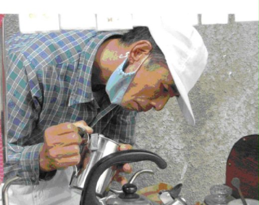 羅大哥泡咖啡時,那種專注凝神的樣子,是很讓人動容的,由於攤子小,他用濾泡的方式沖咖啡,每當他執起水壺,彎身專心的控制著浸泡咖啡的水量,十足像是在泡一杯上千元的咖啡的那份尊重和敬意,我不禁動容,他這樣全心全意泡出來的咖啡,根據我賞味的結果,口感和香氣絕對在水準之上。