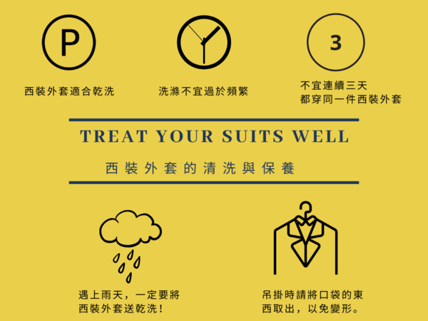 其實有關西裝外套的清洗和保養,以及不同材質的西裝外套分別適合的清洗和收納方式,還有許多知識以及技巧,之後會有許多相關的文章,再請大家持續關注:)