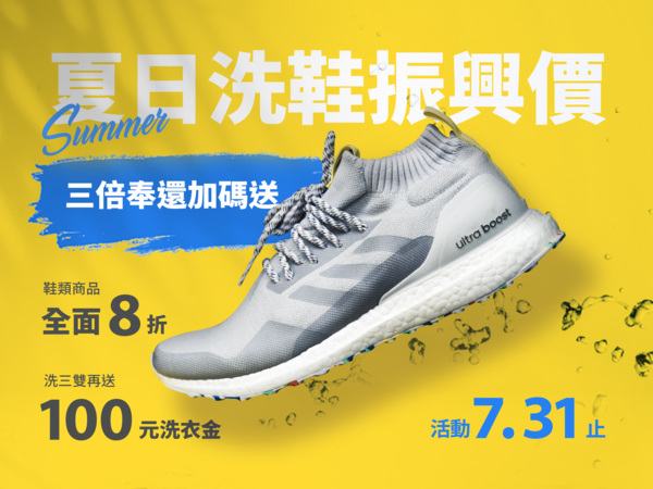 👉活動辦法:超簡單,就是原價打8折,活動期間送洗滿三雙再送100元洗衣金!