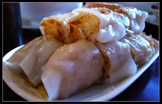 港式炸兩,廣東的特色小吃,是把腸粉和油條加起來做成一道小吃,也是他們的招牌,沾兩種醬汁(芝麻或海鮮沾醬)。這道菜得在於晚上九點半前點,過後師傅就下班了。