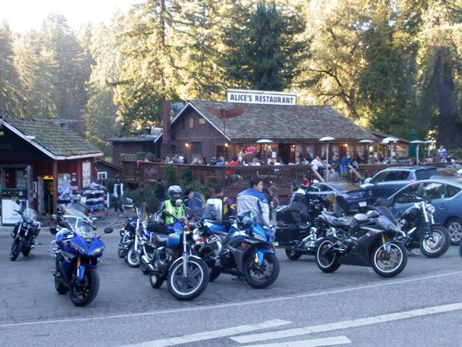 這個週末,老公提議去試試以漢堡聞名的 Woodside Alice's Restaurant 。我一聽立刻上網查它 Yelp 的網評。 178 個 reviews 平均有四顆星,看起來是個好的開始!開了十五分鐘的 101 和十多分鐘的 84 號蜿蜒山路,眼看快暈車時, Alice Restaurant 便出現在眼前。哇!門口好多全副武裝的重型機車騎士!漢堡和重型機車騎士好像真的蠻速配的。走進餐廳內,裝潢果然很美式 - 牆上展示著附近的歷史舊觀,古早機車騎士英姿,屋頂高處懸掛著狩獵戰利品鹿頭一座和不少的霓虹燈啤酒標誌。我們點了 BMW Hambergur,Kobe Beef Burger,蒜泥薯條以及兩杯檸檬汁。我最中意蒜泥薯條! Kobe Beef Burger 很肥美,但是邊吃邊想下一餐得吃少點平衡回來。否則身材可能會像機車騎士們一樣中廣。