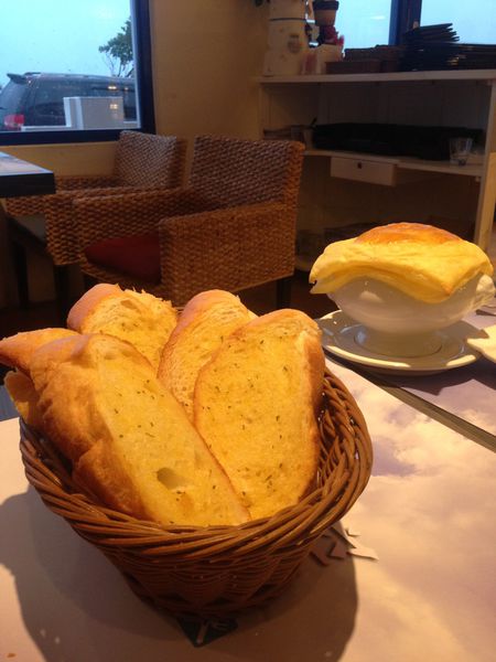 沙拉,烤麵包與酥皮濃湯