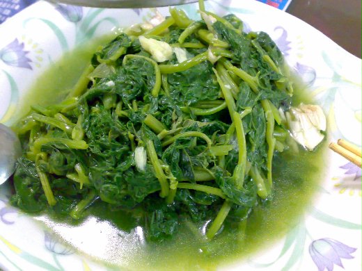 蒜香地瓜葉是小天使最喜愛的一道菜,我使用了另一種快速的料理方法,就是把新鮮地瓜葉洗淨後用開水燙熟撈起,與剁碎的大蒜及少許鹽、油拌勻,一道美味爽口的蒜拌地瓜葉就這麼輕鬆又簡單地完成囉!