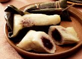 3.湖州粽子非常有名,海外華人聚居處如舊金山、洛夏機檢有湖洲粽出現。這種粽子必須用鏟子頭包法,無論從那一面看,都是一端扁平、一端凸出的模樣,也可說是湖州粽的特別標記。包時最好採新鮮綠竹葉,吃時滿會帶出一股清新的香味。