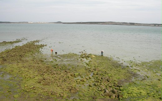 冒出了兩位全副武裝的人 準備採集澎湖海菜呢~