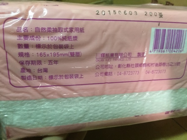 "三層"抽取式衛生紙"綠意抽取式衛生用紙"