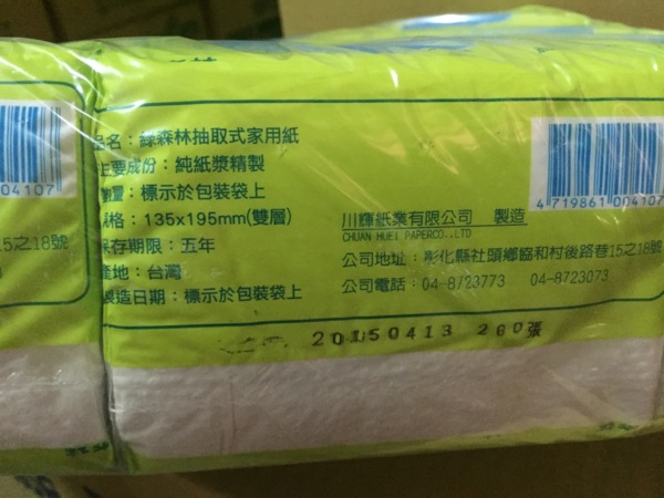 "三層"抽取式衛生紙"綠意抽取式衛生用紙"