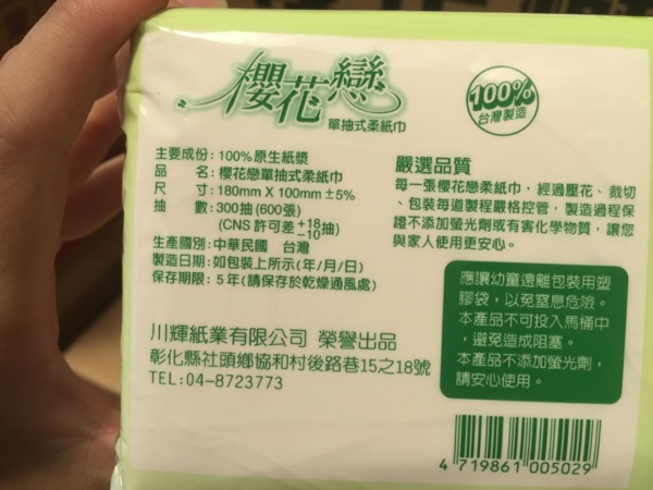"三層"抽取式衛生紙"綠意抽取式衛生用紙"