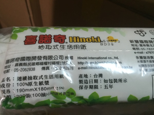 "三層"抽取式衛生紙"綠意抽取式衛生用紙"