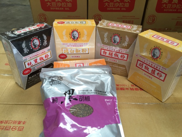 由左至右:老公仔100%純黑胡椒粉、老公仔100%純白胡椒粉、老公仔白胡椒粉、老公仔胡椒鹽粉、中間為老公仔純黑胡椒粒,歡迎團體訂購,大量訂貨本公司提供送貨服務,詢價訂貨電話:03-5680009。