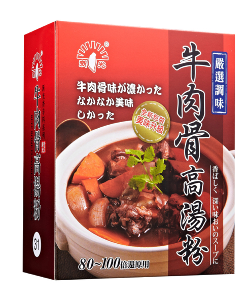 牛肉骨高湯粉,600克/盒,30盒/箱,成份:牛肉抽取物,胡椒,鹽,味精,調味料。特色:新光牛肉骨高湯粉有著牛肉清香與甘甜味,1斤的牛肉骨高湯粉可還原成80斤的美味高湯。歡迎團體訂購,大量訂購本公司提供送貨服務,詢價訂貨電話:03-5680009。