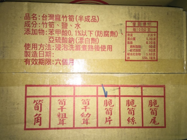 台灣麻竹筍片,成分:竹筍、鹽、水、苯甲酸標準值以下,1箱約20台斤,歡迎團體訂購,大量訂購本公司提供送貨服務,詢價訂貨電話:03-5680009。