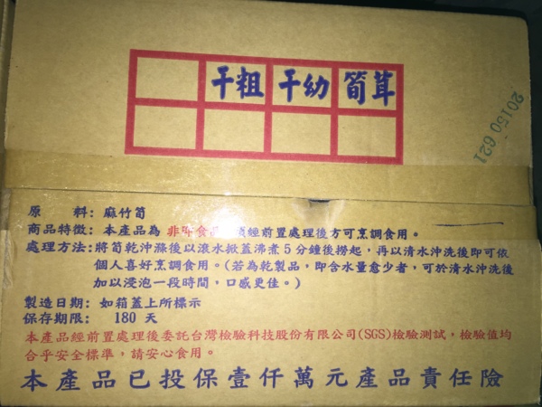 麻竹筍筍干(濕),成分:麻竹筍、水、鹽、苯甲酸標準值內,1箱約20台斤,歡迎團體訂購,大量訂購本公司提供送貨服務,詢價訂貨電話:03-5680009。
