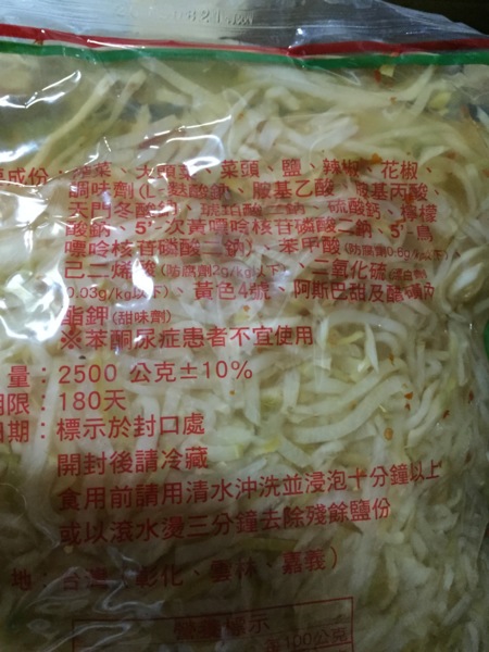 榨菜白絲,成分:榨菜、大頭菜、蘿蔔、鹽、辣椒、花椒與調味劑食品添加物(標準值內),1包約2.5公斤,1箱4包,歡迎團體訂購,大量訂購本公司提供送貨服務,詢價訂貨電話:03-5680009。