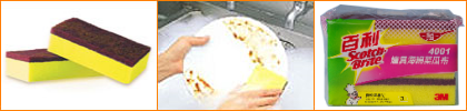 2. 黃色海綿具有良好之吸水能力,亦可用來沾附清潔劑,最適合清潔廚具表面,抹乾水漬,快又有效率!