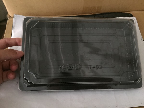 T003黑底壽司盒(底+蓋),底1箱250入、蓋1箱250入,量大可議價,歡迎來電洽詢: 03-5680009。量大本公司提供送貨服務,量少運費外加。