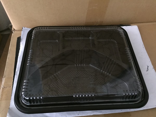 PP黑底四格餐盒(底+蓋),底1箱300入、蓋1箱300入,,量大可議價,歡迎來電洽詢: 03-5680009。量大本公司提供送貨服務,量少運費外加。