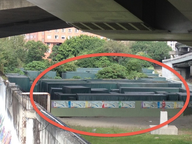左上方就是被支解成435塊後的中山橋,被堆放在以前的再春游泳池原址,右下方的銅像即為李再春同學銅像,彷彿孤獨守護著中山橋被支解的遺體。