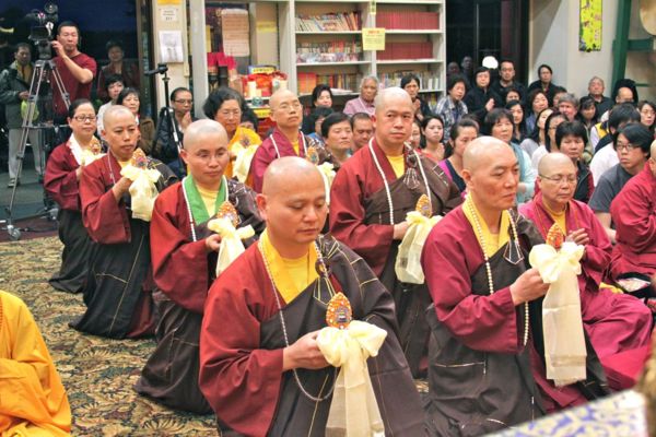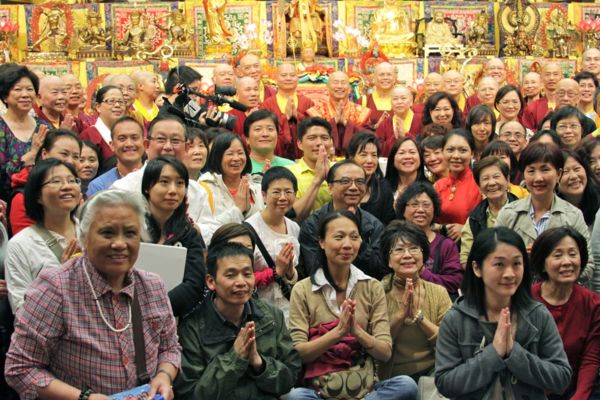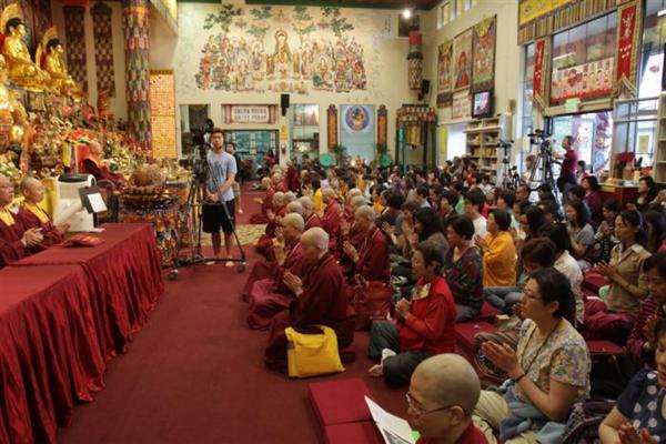 His Holiness Living Buddha Lian-Sheng and King of Dharma Sheng-Yen Lu of True Buddha School, was with pilgrimage disciples from around the world to perform a group cultivation of the Padmakumara Yoga and to perfectly conduct a Dharma teaching of the Chapter 43 ’ Completing the Path ’ of ’ Emptiness within Great Bliss, An Exposition on Hevajra ’ in Seattle Temple, at around 8:00PM on Saturday June 1, 2013.