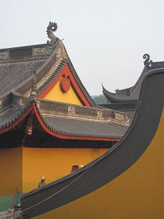 從大雄寶殿的大門走出 後來才知道這批是為了因應觀光客的工作者