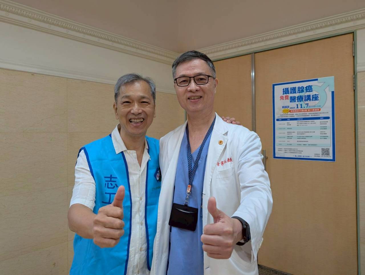 年輕帥氣的泌尿外科郭威廷醫師與林子平副部長分別以深入淺出方式,向大家說明「攝護腺癌治療後的副作用」、「尿失禁/血尿/骨質疏鬆/淋巴水腫如何處理」及「指數升高後如何治療」。