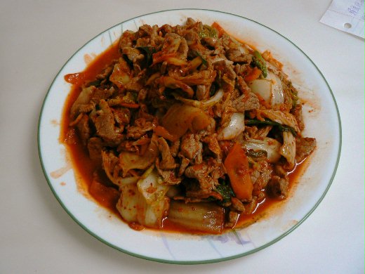材料:泡菜少許,肉片(最好用梅花肉又稱梅頭肉 Pork Shoulder)