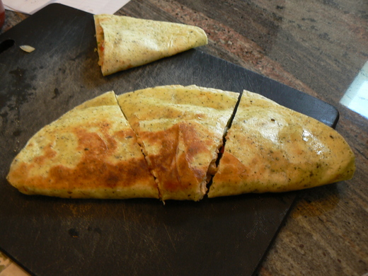 cheese,把餅的另半邊對折過來,作成半月形。