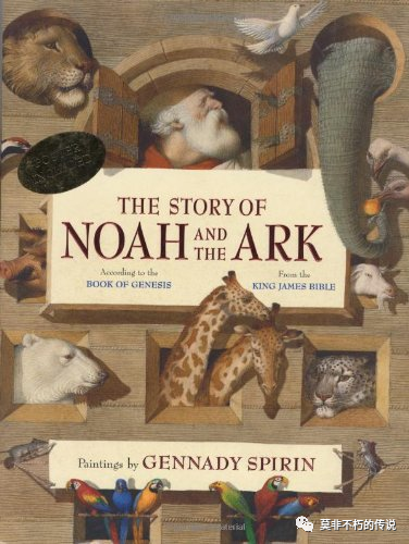 斯皮林(Gennady Spirin,1948-)生於二戰後的聖誕節,東正教傳統的莫斯科近郊小城,受過俄羅斯正統嚴謹美術訓練。蘇聯解體後舉家移民美國,定居普林斯頓大學城。他的畫作得獎無數,這本《諾亞方舟》圖畫書明確以神作為主要角色:故事一開頭就是耶和華現身圖畫最上方,張開的雙臂覆蓋萬有;人物在畫幅裡或者全然缺席或者相對微小。