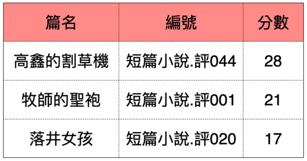 《高鑫的割草機》寫出了人性的掙扎,複雜,精細入微,我認為是第一名的作品。