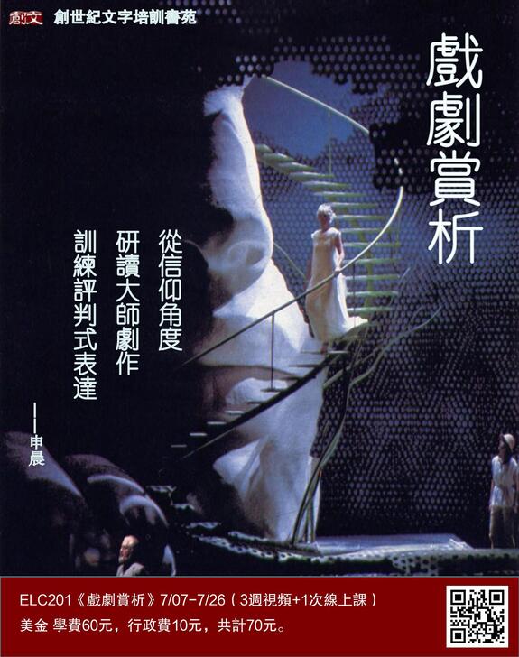 從信仰角度,研讀大師劇作,訓練評判式表達。歡迎查看文末海報,瞭解ELC201《戲劇賞析》。