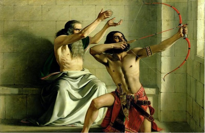老先知嚴肅道:「王啊,請取弓箭來!」