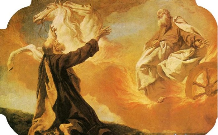以利亚拂塵而去。有五十位先知門徒依依不捨地送行。
