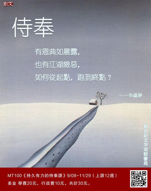 侍奉,有恩典如晨露,也有江湖險惡。如何從起點,跑到終點?歡迎查看文末海報,瞭解MT100《持久有力的侍奉課》。