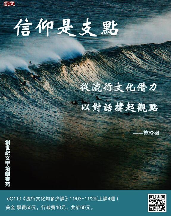 從流行文化借力,以對話撐起觀點。歡迎查看文末海報,瞭解eC110《流行文化知多少課》。