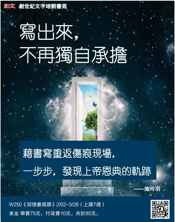 借書寫重返傷痕現場,一步步,發現祂恩典的軌跡。歡迎查看文末海報,瞭解W250《回憶書寫課》。