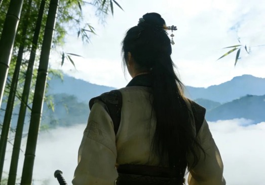 蓊鬱的竹林中,溫暖的陽光灑落一地,映照在她冷峻的臉上。她手握赤女劍,雙手交叉胸前,如石像佇立。背後一名滿臉橫肉的壯漢,跪地磕頭如搗蒜,不斷哀求著:「女俠饒命!女俠饒命!小的再也不敢欺負人了!」
