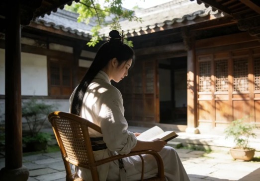 小盼一臉狐疑地望著長老娘,正想問個明白,只見長老娘快步走向書桌,拿起那本厚厚的書冊,轉頭望向小盼說:「這就是你要找的那本武林秘笈。」