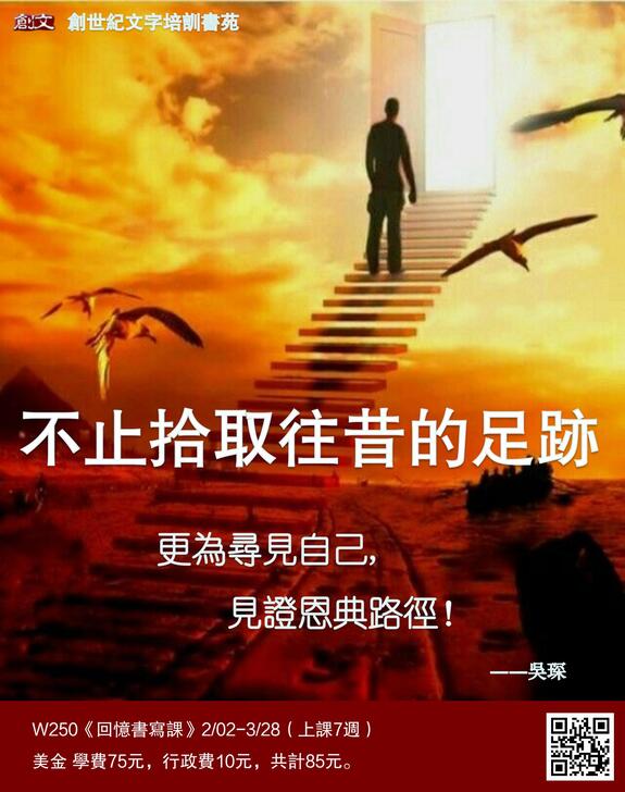 因家人工作的緣故,30多年來,我家像寄居蟹一樣不停更換棲身之所,過著變動漂移、四海為家的生活。我像是固守邊防、枕戈待旦的士兵,隨時要與時間賽跑。為了應付變動,一直以來我恪守著保羅所言「舊事已過,都變成新的了」、「忘記背後,努力向前的,向著標竿直跑」。我相信唯有趕快拋開過去,才能快步向前。但這堂回憶書寫課,一方面要我開封記憶、重映歲月,另一方面卻又指出「回憶書寫,其實不在記錄回憶,而是在摸索一生故事的主題」。我在困惑中摸索前進,走到終點回頭來看,竟是一場心靈盛宴,裝載著滿滿收穫。