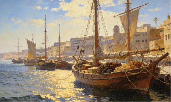 「這是我們的未來。」約拿單攥住她的手,雙目銳利如炬,話聲蓋過港口喧嘩:「相信我,幾年後,我們將擁有一艘以黎巴嫩香柏為桅杆、巴珊橡木為搖槳的商船。到時,你只需站在這裡,看到那飄動的埃及繡花細麻布篷帆,就知道是我遠航回來了。」