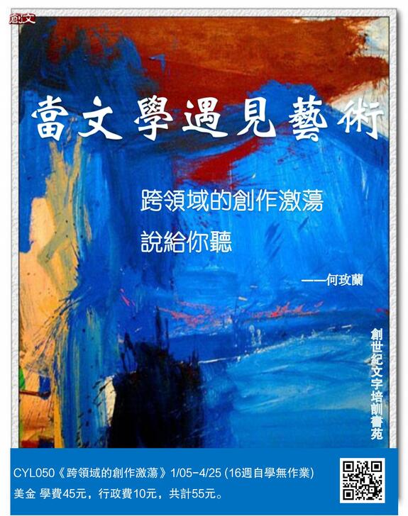 當文學遇見藝術,跨領域的創作激蕩,說給你聽。歡迎查看文末海報,瞭解CYL050《跨領域的創作激蕩》。