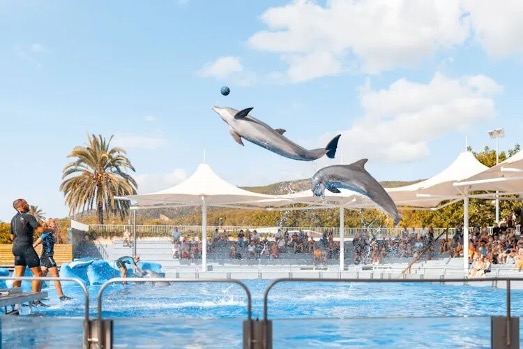 「哈,怎麼會?人類對我們很友好。他們喜歡看表演,比如這樣!」說著,泡泡和幾隻海豚爭相躍出海面,引來船上的一陣陣讚歎聲。
