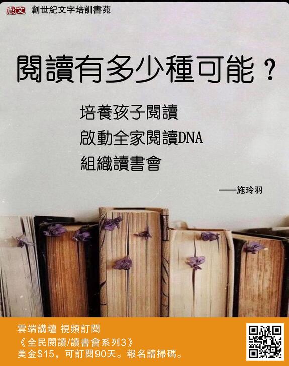 閱讀有多少種可能?培養孩子閱讀,啟動全家閱讀DNA,組織讀書會。歡迎查看文末海報,瞭解雲端講壇系列3《全民閱讀/讀書會》。