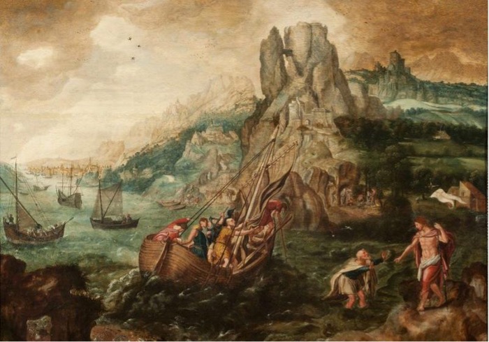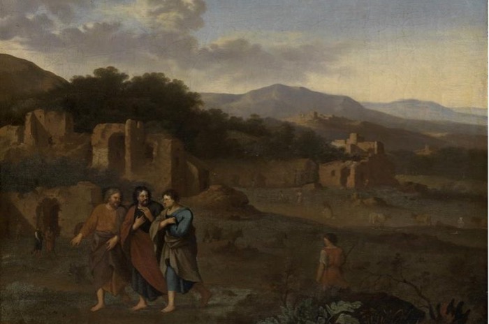《基督與兩門徒在通往以馬忤斯之路上的義大利風景》,科內利斯·范·波倫堡